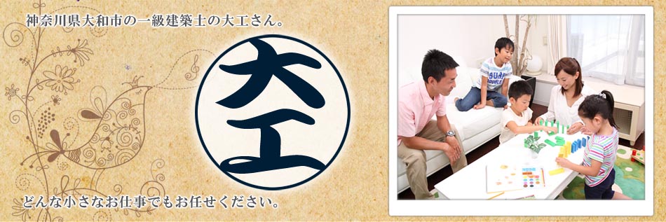 室内リフォームの水周りの工事、畳工事、電気工事、外装屋根の修復・塗り直し、網戸・室内ドアの建て付けや襖張替え、 障子張替え、などなど、家のことなら、どんな小さなお仕事を何でも相談にのります。 一級建築士の設計するデナイナーズ家屋・建築もお任せ下さい!